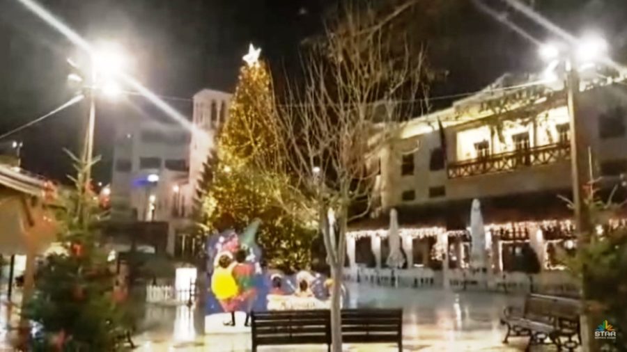Σε συνδυασμό με τον χριστουγεννιάτικο στολισμό στην κεντρική πλατεία της πόλης, το τοπίο είναι μαγευτικό.