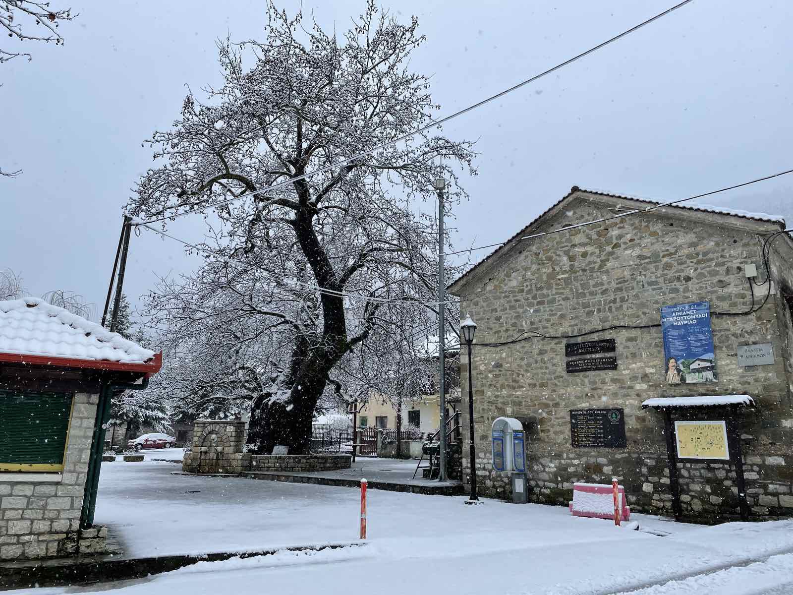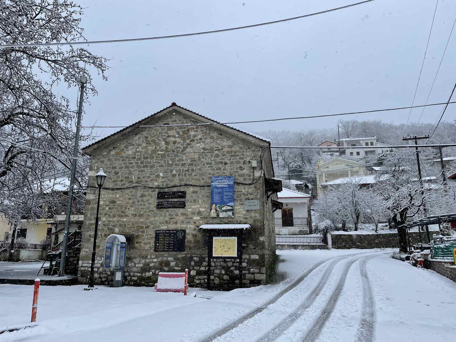 Η Σοφία Μανδραβέλη κατέγραψε το χειμωνιάτικο τοπίο στο Μαυρίλο Φθιώτιδας.