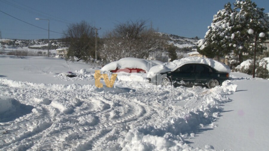 Με ότι μέσο έχουν, προσπαθούν να εκχιονίσουν τα αυτοκίνητα και τις αυλές τους, οι κάτοικοι των εργατικών κατοικιών της Θήβας.