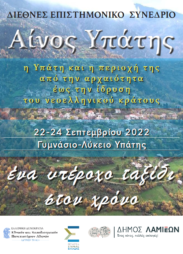 Η Περιφέρεια Στερεάς Ελλάδας, ο Δήμος Λαμιέων, το Εθνικό και Καποδιστριακό Πανεπιστήμιο Αθηνών, με την υποστήριξη του Οργανισμού Πολιτιστικής Ανάπτυξης Στερεάς Ελλάδας (ΟΠΑΣΤΕ) συνδιοργανώνουν στην Υπάτη, από τις 22 έως και τις 24 Σεπτεμβρίου 2022, τριήμερο Διεθνές Επιστημονικό Συνέδριο για την ιστορική πόλη με τίτλο «Αίνος Υπάτης: η Υπάτη και η περιοχή της από την αρχαιότητα έως την ίδρυση του νεοελληνικού κράτους».