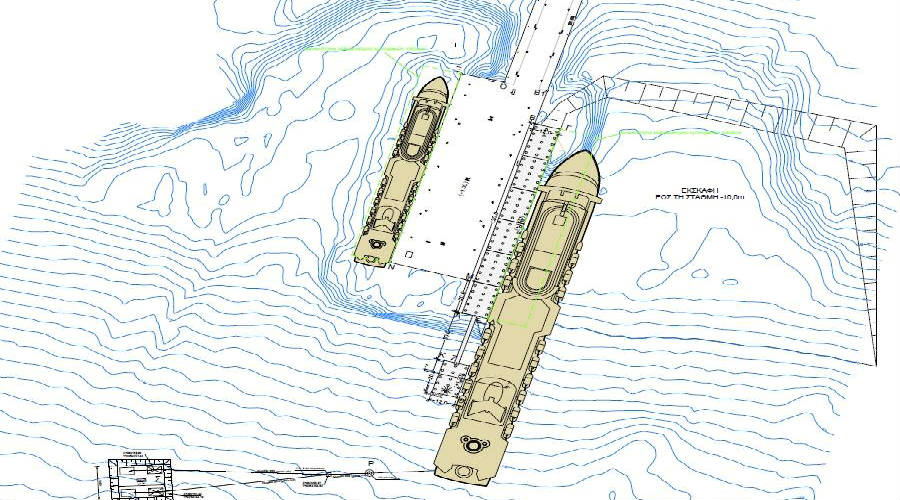 Εκσκαφή του πυθμένα για την εξασφάλιση του αναγκαίου βάθους στην περιοχή του μετώπου παραβολής και του χώρου ελιγμών των πλοίων.