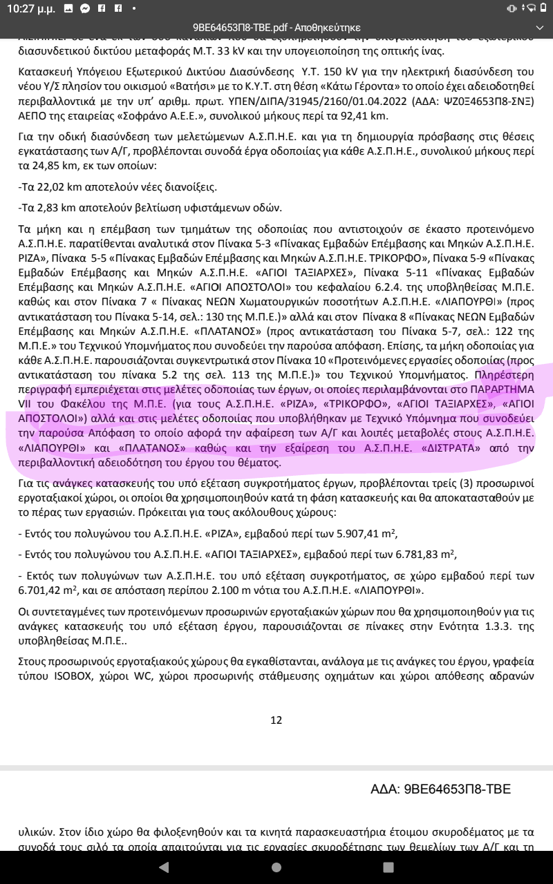 Επίσης προχωρούν τις διαδικασίες για την προσφυγή προς το ΣτΕ μαζί με τον Δήμο Καρύστου ζητώντας ακύρωση της Έγκρισης Περιβαλλοντικών Όρων για ολόκληρο το έργο που αν γίνει θα βάλει ένα ακόμη λιθαράκι στην υποβάθμιση του φυσικού και ανθρωπογενούς περιβάλλοντος της Νότιας Καρυστίας.