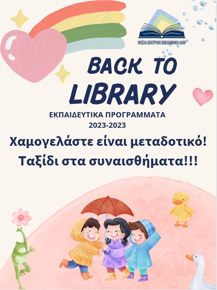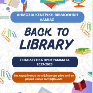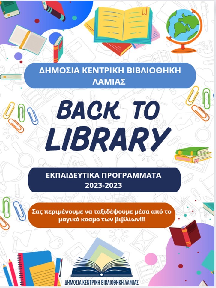 Η Δημόσια Κεντρική Βιβλιοθήκη Λαμίας για το σχολικό έτος 2023-2024 σχεδίασε μια σειρά εκπαιδευτικών προγραμμάτων για μαθητές Προσχολικής, Πρωτοβάθμιας και Δευτεροβάθμιας Εκπαίδευσης, με κύριο στόχο την ενίσχυση της εκπαιδευτικής διαδικασίας με τη χρήση της συλλογής της Βιβλιοθήκης. Κύριος σκοπός των προγραμμάτων η εξοικείωση των μαθητών με τις υπηρεσίες της Βιβλιοθήκης, η ενίσχυση της φιλαναγνωσίας, η καλλιέργεια χρήσιμων δεξιοτήτων και η διασκέδαση μέσα από την μάθηση, σε έναν χώρο οικείο και δημιουργικό.
