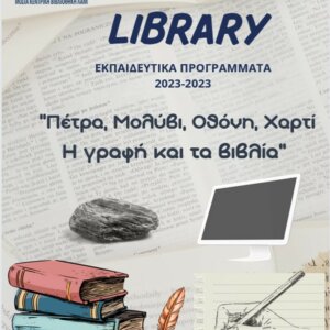 Στόχος του προγράμματος είναι τα παιδιά μέσα από τη διαχρονική παρουσία της γραφής να κατανοήσουν την αξία της και τη συμβολή της στην εξέλιξη της ανθρωπότητας, καθώς και τον διαπολιτισμικό της χαρακτήρα από την αρχαιότητα έως σήμερα. Το εργαστήριο θα τους δώσει την ευκαιρία να συστηθούν με τα υλικά της γραφής και να γνωρίσουν τη σχέση γραφής και βιβλιοθήκης, να πειραματιστούν στην πράξη με τους διάφορους τρόπους γραφής, ενώ παράλληλα θα δούνε την εξέλιξη του βιβλίου από τα πρώτα στάδια μέχρι την σύγχρονη ηλεκτρονική του μορφή. (Το πρόγραμμα απευθύνεται σε μαθητές Δημοτικού και Γυμνασίου, διάρκεια 60΄)