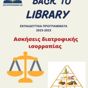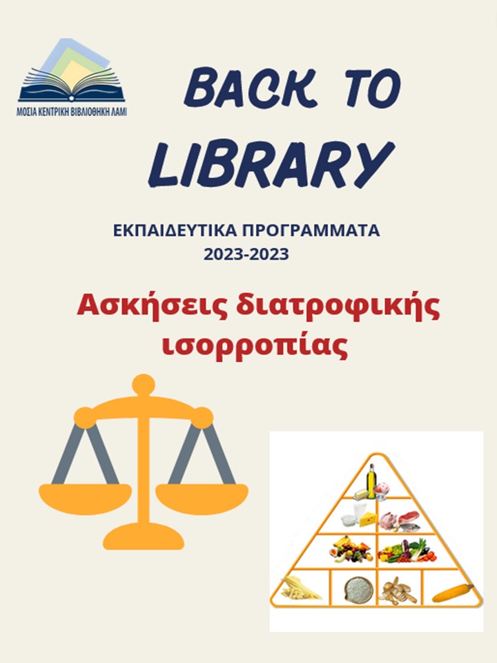 Στόχος του προγράμματος είναι να γνωρίσουν οι μαθητές, με ευχάριστο και βιωματικό τρόπο (ομαδικά παιχνίδια, κουίζ και σταυρόλεξα, κατασκευές κ.α) τις βασικές αρχές της υγιεινής διατροφής, με απώτερο σκοπό να υιοθετήσουν καλές διατροφικές συνήθειες, και να γίνουν φορείς μετάδοσης των γνώσεων που αποκόμισαν στο οικογενειακό και σχολικό τους περιβάλλον. Τα παιδιά έρχονται σε επαφή με τα βιβλία της Βιβλιοθήκης που σχετίζονται με τη διατροφή, εκφράζουν τις δικές τους γνώσεις κι εμπειρίες και συνθέτουν την ιδανική προσωπική τους διατροφή. (Το πρόγραμμα απευθύνεται σε μαθητές Δημοτικού, Γυμνασίου και Λυκείου. Διάρκεια 60΄-90΄)