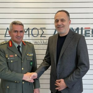 Εθιμοτυπική συνάντηση με τον νέο Ανώτερο Διοικητή Φρουράς και Διοικητή του Κέντρου Εκπαίδευσης Υλικού Πολέμου (ΚΕΥΠ), Ταξίαρχο Αναστάσιο Μαυρομάτη, είχε το πρωί της Δευτέρας 11 Μαρτίου στο γραφείο του, ο Δήμαρχος Λαμιέων Πανουργιάς Παπαϊωάννου, με την παρουσία και του απερχόμενου Διοικητή Υποστρατήγου εν αποστρατεία Ευάγγελου Κατσάρα.