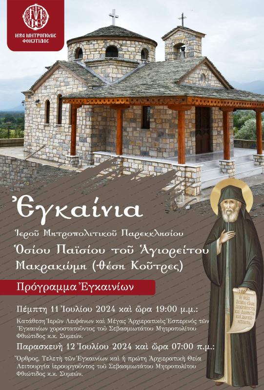 Εκ της Ιεράς Μητροπόλεως γίνεται γνωστό ότι για την διευκόλυνση της πρόσβασης των προσκυνητών, για το ιστορικό γεγονός των Εγκαινίων του Ιερού Ναού του Οσίου Παϊσίου στην Μακρακώμη, σήμερα Πέμπτη 11 Ιουλίου το απόγευμα από τις 18:00 μ.μ. και αύριο Παρασκευή 12 Ιουλίου το πρωί από τις 06:00 π.μ. κατάλληλο λεωφορείο του ΚΤΕΛ θα πραγματοποιεί συνεχή δρομολόγια με αφετηρία το Κέντρο Υγείας Μακρακώμης, ώστε να μεταφέρει δωρεάν τους πιστούς στο Ναό του Οσίου Παϊσίου.