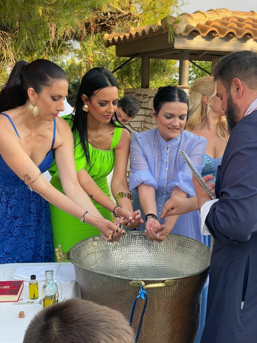 Το μυστήριο πραγματοποιήθηκε στις 7μμ του Σαββάτου 28 Ιουνίου, στο ίδιο εκκλησάκι που βαπτίστηκε πριν 5 χρόνια ο πρωτότοκος Άγγελος, στον Άγιο Δημήτριο του κτήματος Blue Island στην Πάρνηθα.