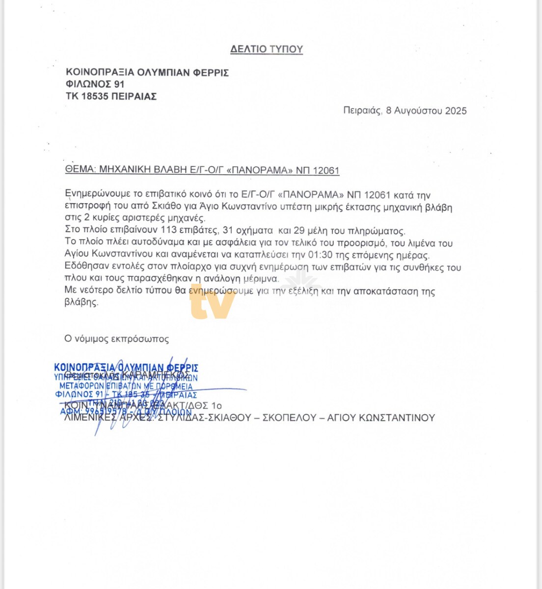 Η ενημέρωση από την εταιρεία για το περιστατικό
