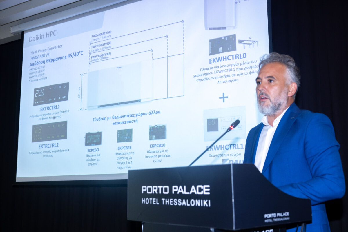 Παράλληλα, με στόχο την εκπαίδευση των επαγγελματιών στο νέο ψυκτικό μέσο R290 και την παρουσίαση της νέας Altherma 4 H, στις 10/09 πραγματοποιήθηκε εμπορική παρουσίαση στο ξενοδοχείο Porto Palace από τους μηχανικούς της Daikin. Περισσότεροι από 100 επαγγελματίες του κλάδου, ενημερώθηκαν για το μέλλον της θέρμανσης ενώ είχαν την ευκαιρία για ερωταπαντήσεις και networking, με το πέρας της παρουσίασης.
