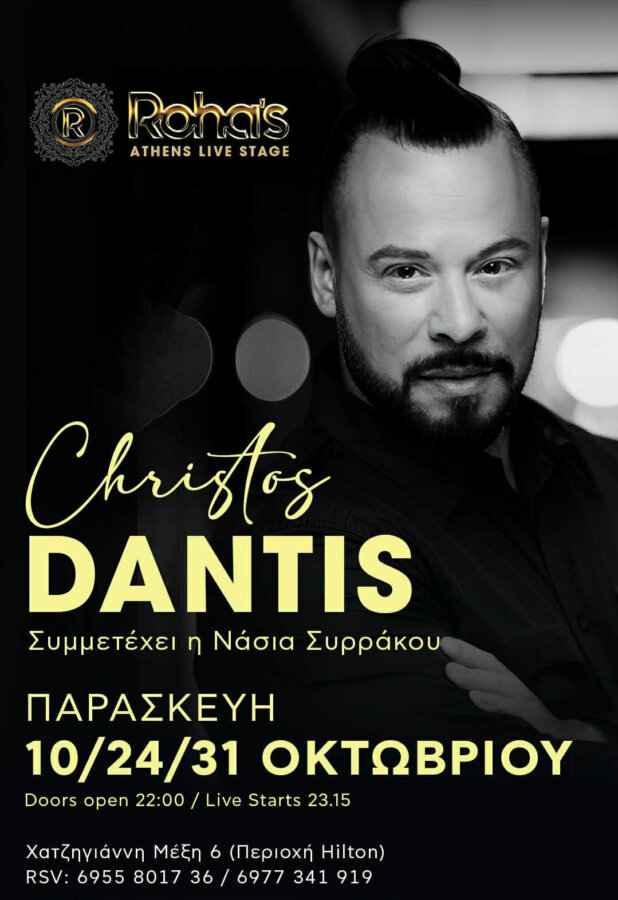 Ο Τραγουδιστής Χρήστος Δάντης στο ROHAS Athens Live Stage στην Αθήνα κάθε Παρασκευή.