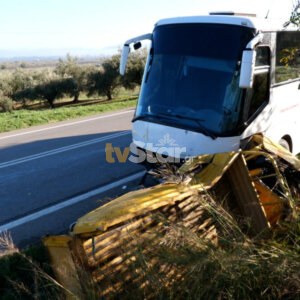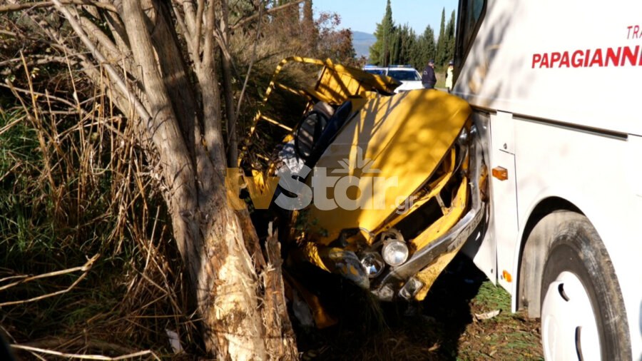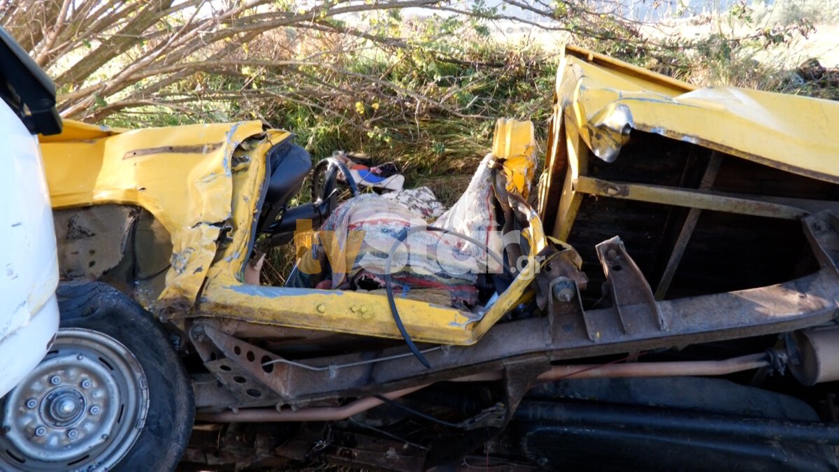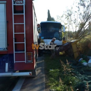 Σφοδρή πλαγιομετωπική σύγκρουση αγροτικού αυτοκινήτου με διερχόμενο λεωφορείο στο ίδιο ρεύμα κυκλοφορίας είχε ως αποτέλεσμα τον τραυματισμό οδηγού και συνοδηγού του μικρού αγροτικού.