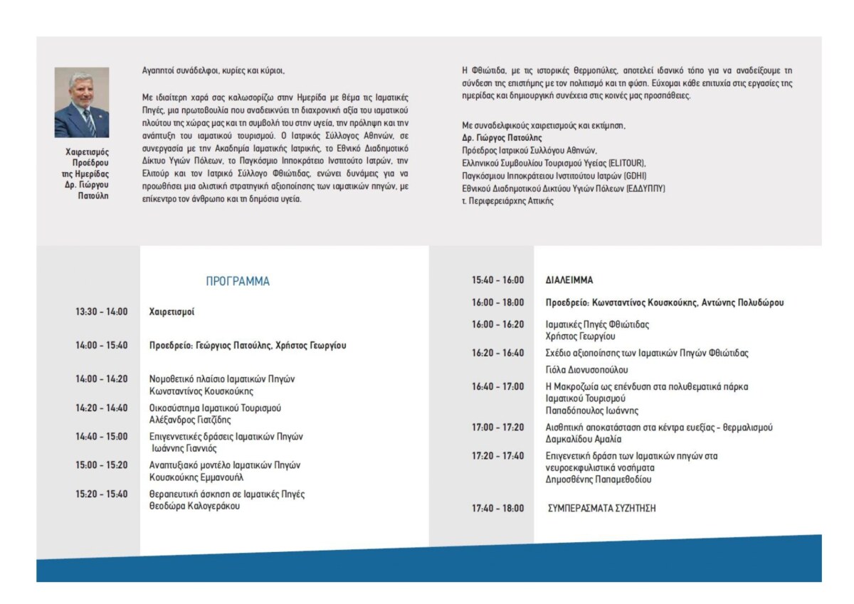 Ημερίδα του Ιατρικού Συλλόγου με θέμα “Ιαματικές πηγές στη Φθιώτιδα”