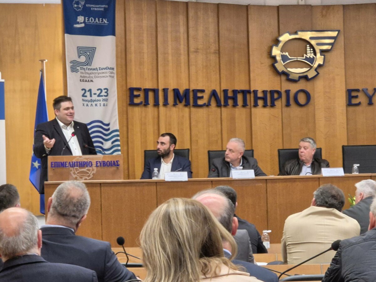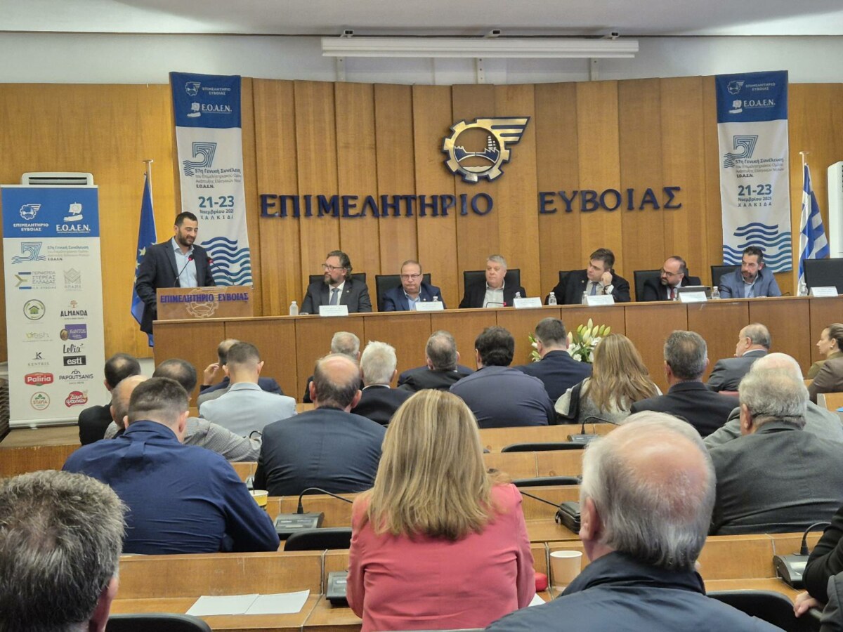 Στη Χαλκίδα πραγματοποιείται η 57η Γενική Συνέλευση του Επιμελητηριακού Ομίλου Ανάπτυξης Ελληνικών Νησιών. Την Παρασκευή το απόγευμα κηρύχθηκε η έναρξη των διήμερων εργασιών από τον πρόεδρο του Επιμελητηρίου της Εύβοιας, Γιάννη Γεροντίτη και τον προέδρο της Κεντρικής Ένωσης Επιμελητηρίων Ελλάδας, Γιάννη Βουτσινά.