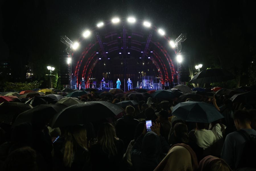 Αρκετοί πολίτες βρέθηκαν από νωρίς στην πλατεία Συντάγματος για να παρακολουθήσουν τις εκδηλώσεις, κρατώντας ομπρέλες.