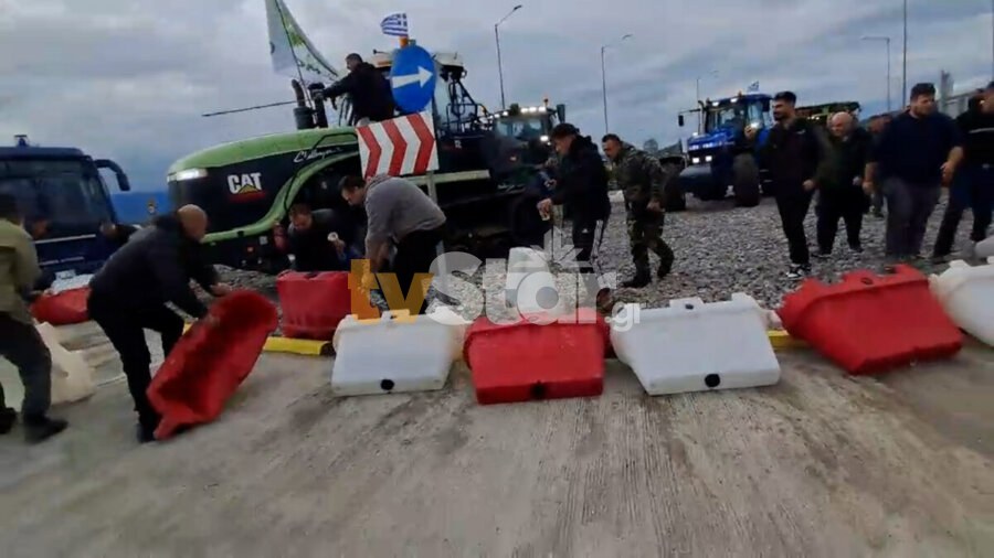 Οι αγρότες αιφνιδίασαν τις αστυνομικές δυνάμεις. Έσπασαν τον κλοιό που είχαν στήσει ισοπεδώνοντας τα προστατευτικά στηθαία του κυκλικού κόμβου.