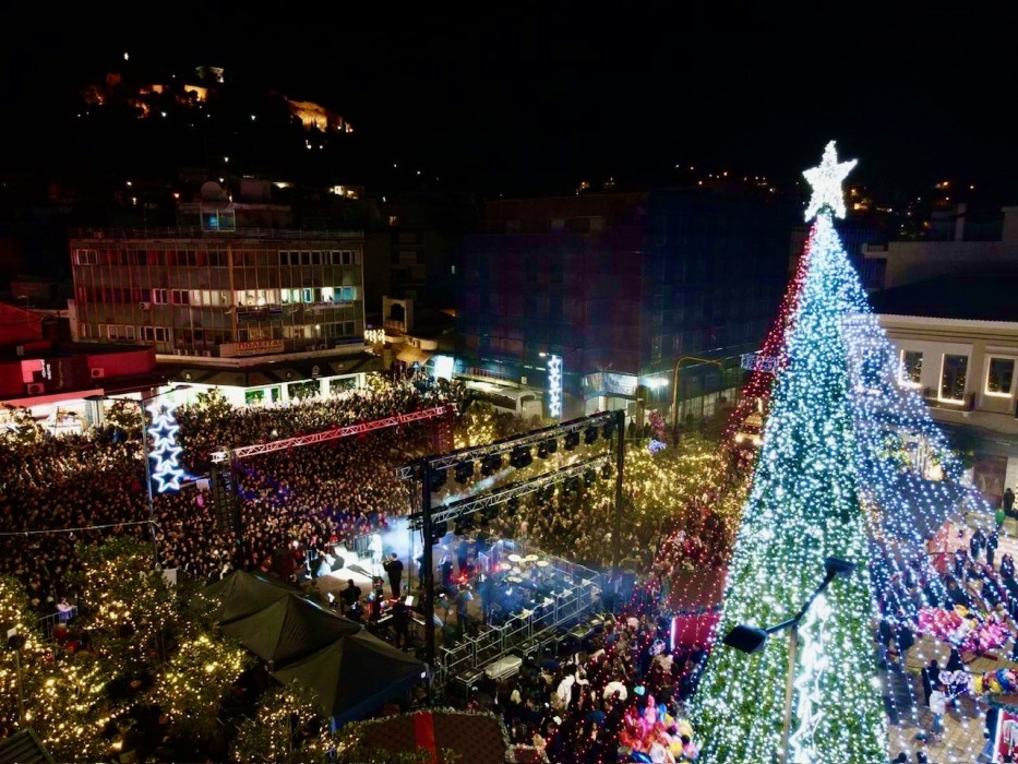 Άναψε το χριστουγεννιάτικο δένδρο στη Λαμία. Χιλιάδες Λαμιώτες στο κέντρο της πόλης για την Κατερίνα Λιόλιου. (φωτο video)