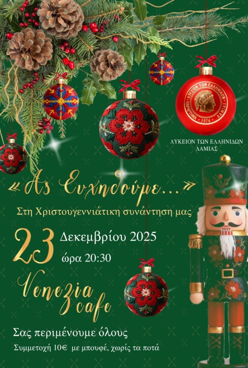 Το Λύκειο Ελληνίδων Λαμίας διοργανώνει χριστουγεννιάτικη εκδήλωση.