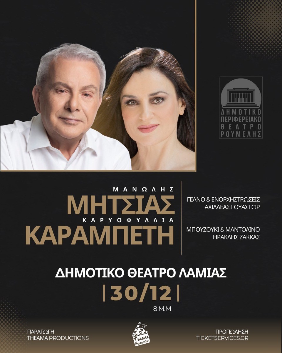 Αφιέρωμα στους Έλληνες ποιητές με τον Μανώλη Μητσιά και την Καρυοφυλλιά Καραμπέτη στη Λαμία (Κερδίστε προσκλήσεις!!!)