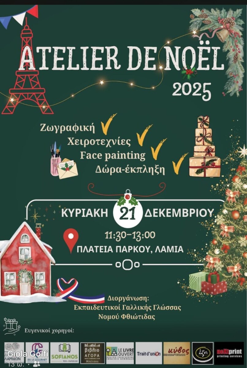 Οι Εκπαιδευτικοί Γαλλικής Γλώσσας Νομού Φθιώτιδας σας προσκαλούν σε ένα ξεχωριστό χριστουγεννιάτικο εργαστήρι, το Atelier de Noël 2025, γεμάτο δημιουργία, χρώματα και εορταστική διάθεση.