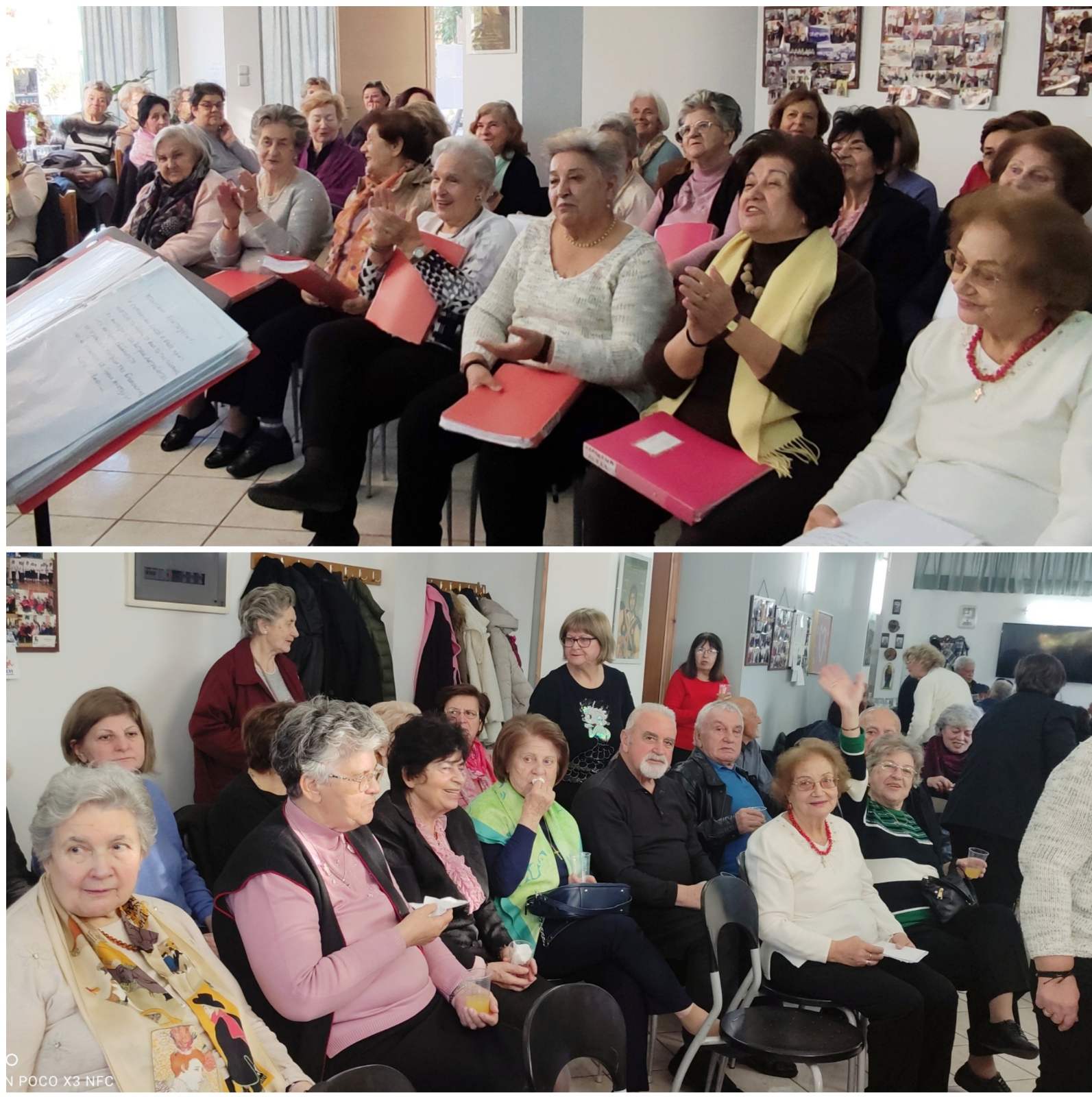 Η εκδήλωση περιλάμβανε εορταστικό πρόγραμμα από τη θεατρική ομάδα του Β΄ ΚΑΠΗ «Ηλιοκαμένοι» και τη χορωδία του, που απέσπασαν το θερμό χειροκρότημα. Ιδιαίτερη ήταν η συμβολή του σκηνοθέτη Κώστα Πασπάλη, καθώς και του μουσικού Δημήτρη Γκαραβέλη που πλαισίωσε μουσικά τη γιορτή. Στο τέλος μοιράστηκαν χριστουγεννιάτικα γλυκά και ευχετήριες κάρτες, προσφορά των μελών του ΚΑΠΗ.
