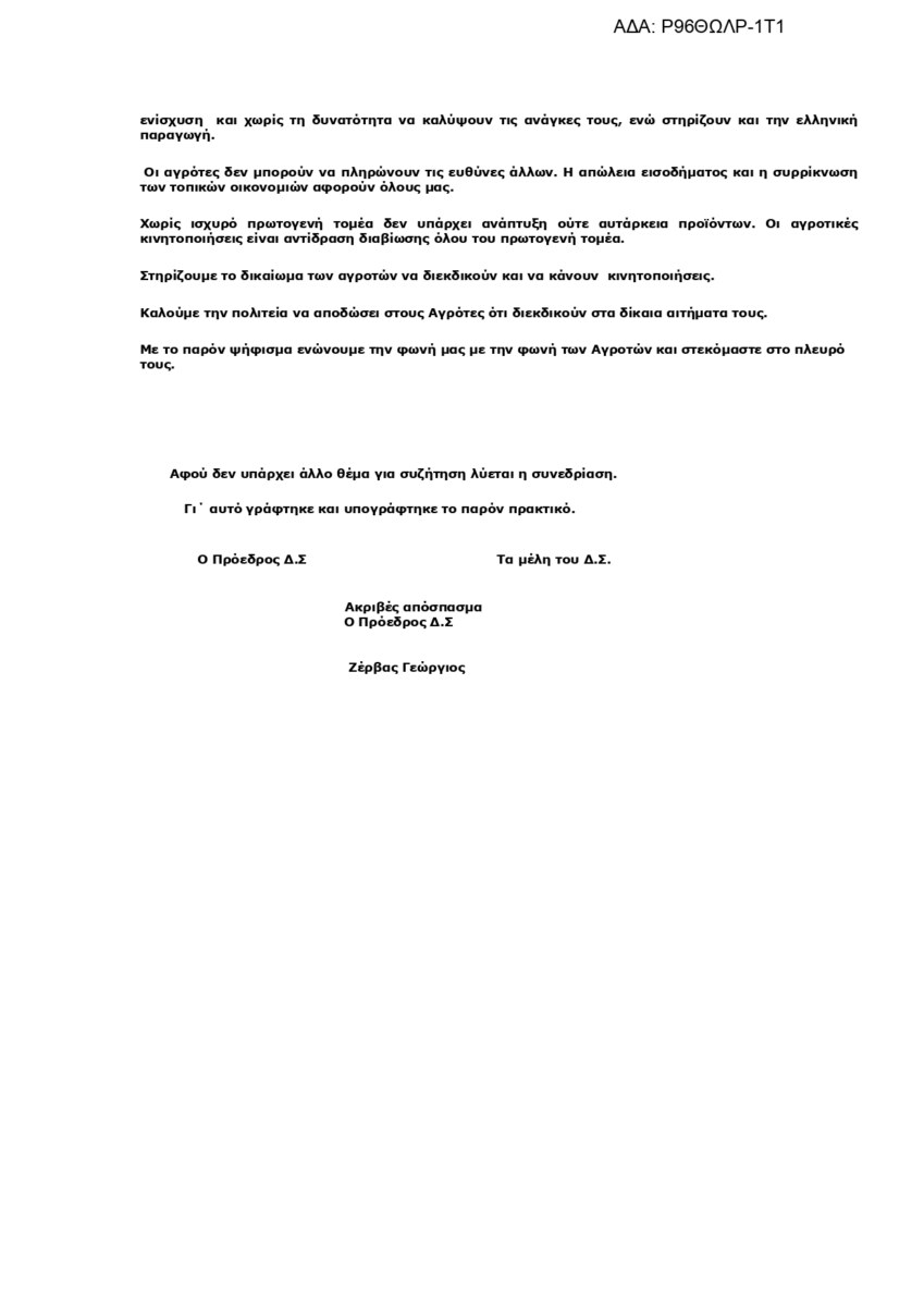 Το δημοτικό συμβούλιο εκφράζει ομόφωνα την υποστήριξή του στις κινητοποιήσεις των αγροτών.