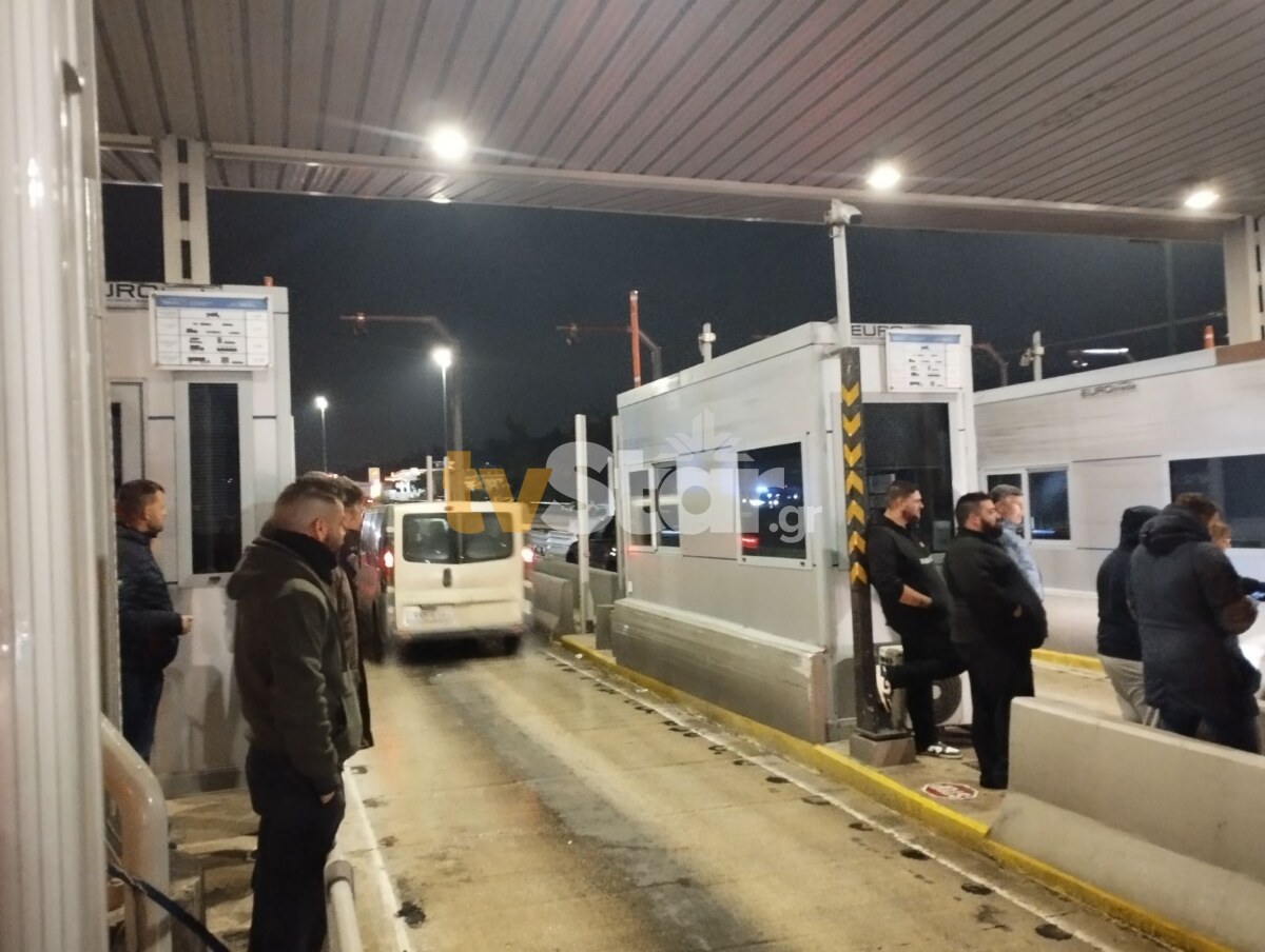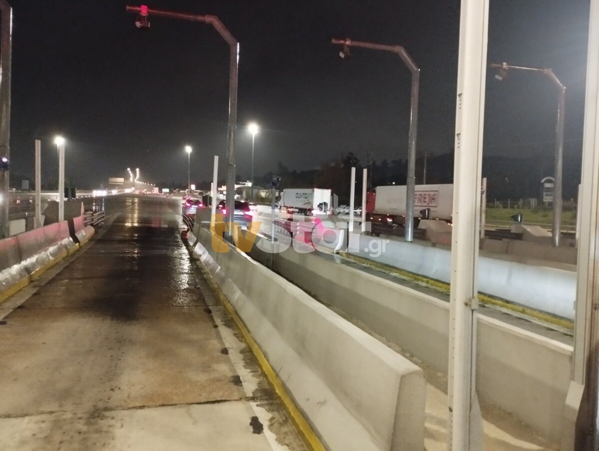 Τα διερχόμενα οχήματα περνούν ελεύθερα από τις ανεβασμένες μπάρες. Τα διόδια άνοιξαν λίγο πριν τις 19.00.