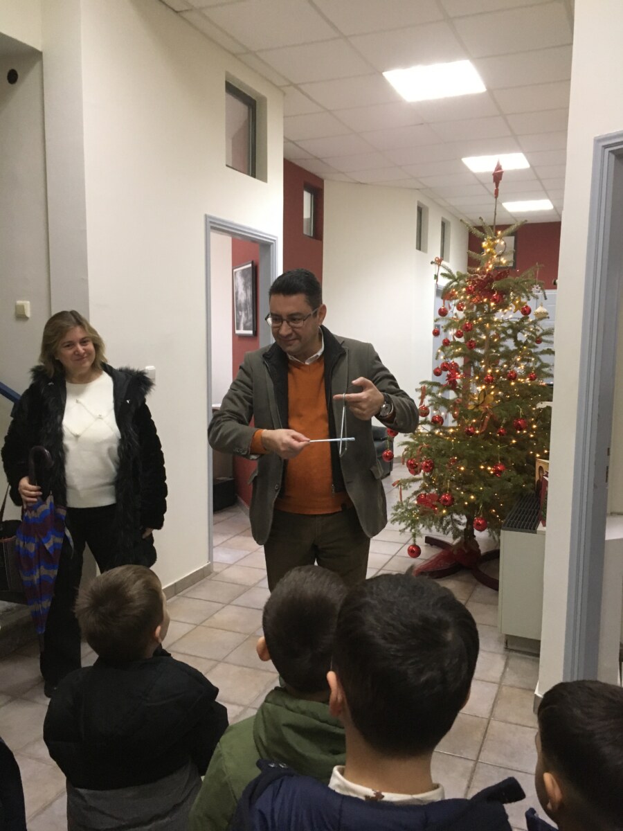 Σήμερα, Δευτέρα 22 Δεκεμβρίου 2025, ο Δήμαρχος Λοκρών κ. Αθανάσιος Ζεκεντές, η Αντιδήμαρχος Παιδείας κ. Γιούλη Καζάνα, οι Αντιδήμαρχοι κ. Νικόλαος Σωτήρχου και κ. Χρήστος Καλλής, υποδέχτηκαν στο Δημαρχείο Αταλάντης τους μαθητές του 2ου Νηπιαγωγείου Αταλάντης στις 10:30 με τους εκπαιδευτικούς και την Προϊσταμένη κ. Παναγιώτα Γιορντού και τραγούδησαν τα παραδοσιακά κάλαντα. Ακολούθησε επίσκεψη από τους μαθητές του Γυμνασίου Αταλάντης στις 11:00 οι οποίοι με συνοδεία μουσικών οργάνων επίσης τραγούδησαν χριστουγεννιάτικα κάλαντα υπό την καθοδήγηση της καθηγήτριας μουσικής του σχολείου.