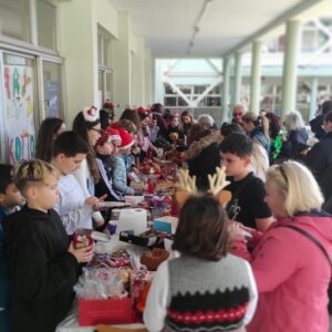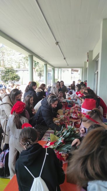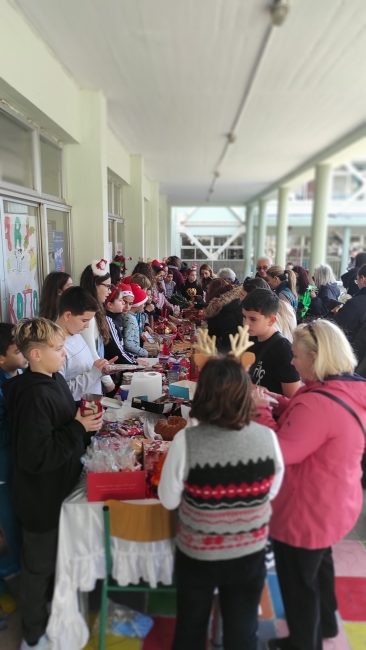 “Πελάτες” συμμαθητές και μαμάδες – μπαμπάδες απ’ όλες τις τάξεις: Γλυκίσματα, κέικ, βραχιολάκια, ζωγραφισμένα μπουκάλια και ξύλα, φυτά-γούρια, μπρελόκ κ.α. όμορφες κατασκευές γέμισαν τους πάγκους στο προαύλιο του Σχολείου και σε μια ώρα…ξεπούλησαν!