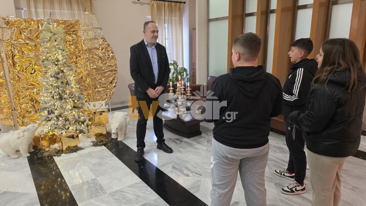 Ο δήμαρχος Λαμιέων Πανουργιάς Παπαϊωάννου υποδέχθηκε τους μικρούς φίλους στο δημαρχείο στην οδό Σκληβανιώτη.