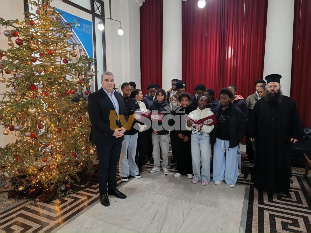 Από νωρίς το πρωί παρέες παιδιών και σύλλογοι έψαλλαν τα κάλαντα στον μητροπολίτη Φθιώτιδας Συμεών.