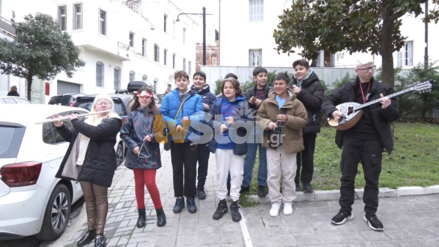 Από άκρη σε άκρη σε όλη την πόλη αγόρια και κορίτσια βγήκαν στους δρόμους για να πουν τα κάλαντα.