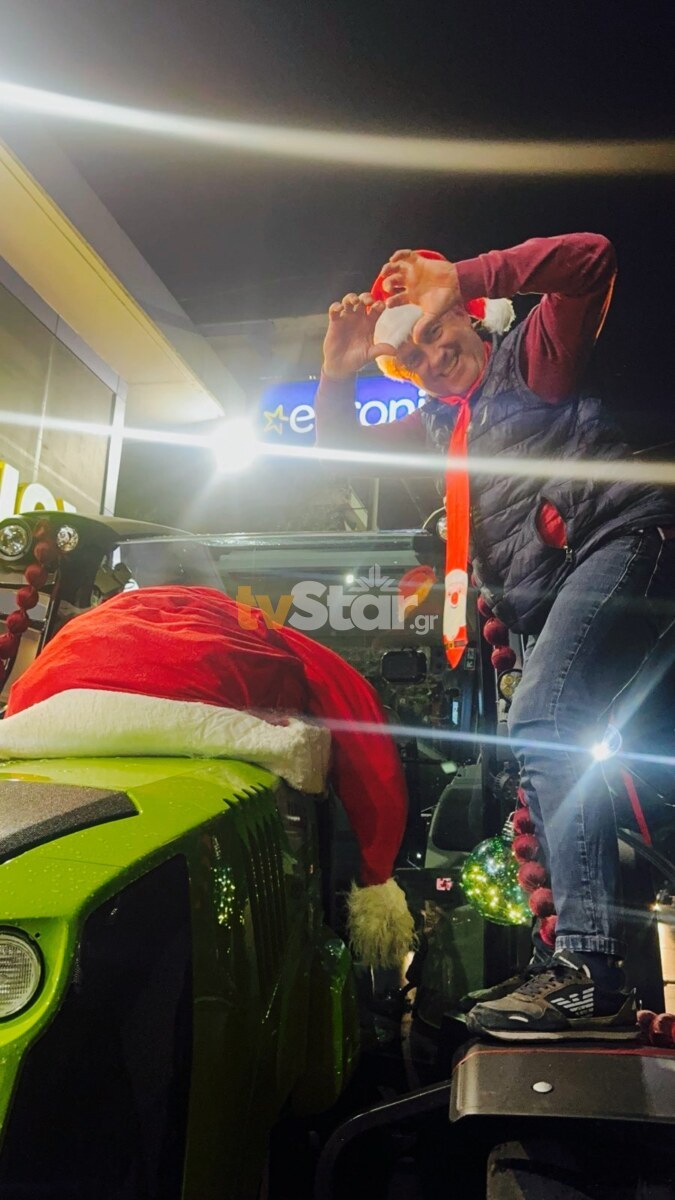 Στο πνεύμα των ημερών και μέσα στην επικαιρότητα των αγροτικών κινητοποιήσεων ο Γιάννης Μπακοστέργιος μαζί με τη σύζυγό του, Λένα έκαναν βόλτα με το στολισμένο τρακτέρ τους στην πόλη μεταφέροντας τη γιορτινή διάθεση.