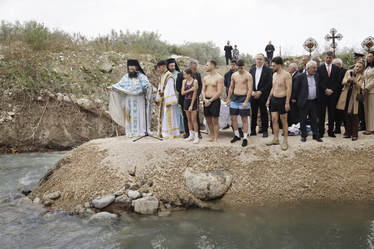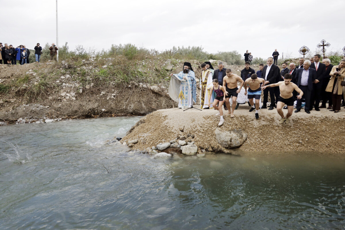 Η τελετή πραγματοποιήθηκε με κατάνυξη ενώ 4 παιδιά έπεσαν στο ποτάμι για να πιάσουν τον Tίμιο Σταυρό.