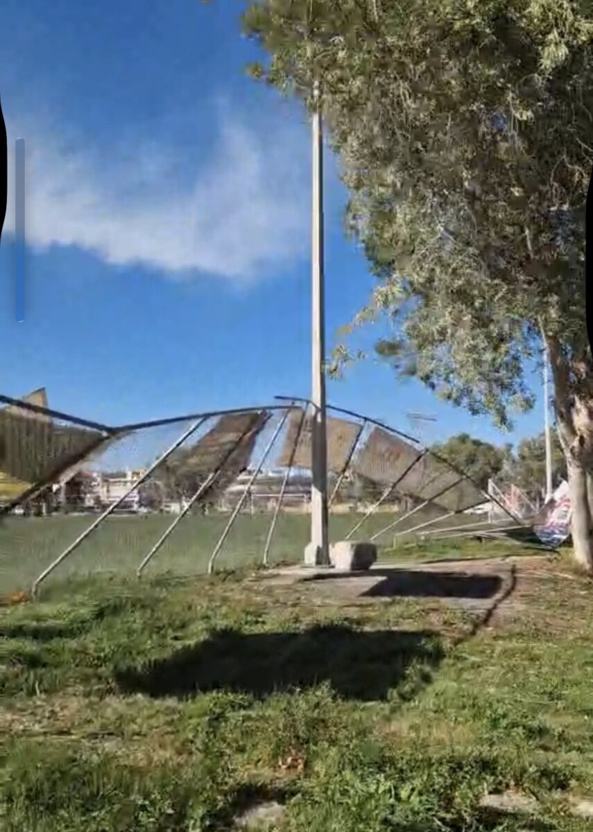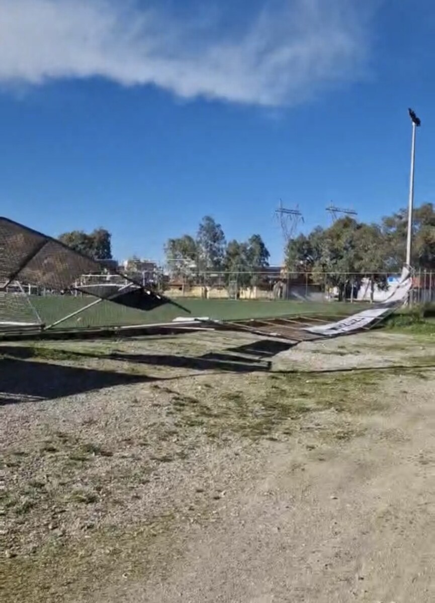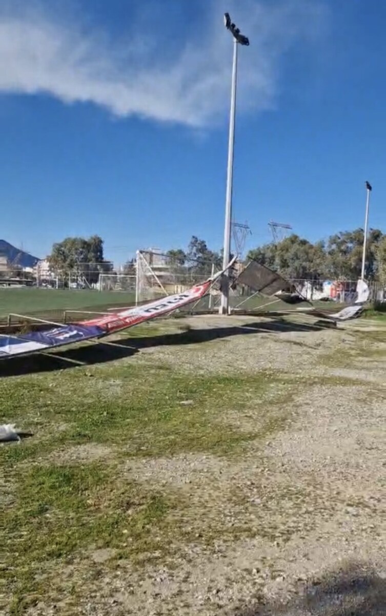 Ισχυροί άνεμοι έριξαν τμήμα της περίφραξης στο γήπεδο ποδοσφαίρου του Πάρκου Λαού στη Χαλκίδα (φωτο)
