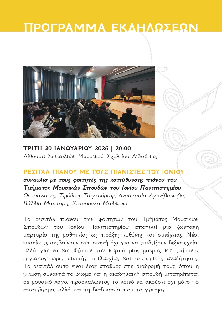 • Φοιτητές της κατεύθυνσης πιάνου του Τμήματος Μουσικών Σπουδών του Ιονίου