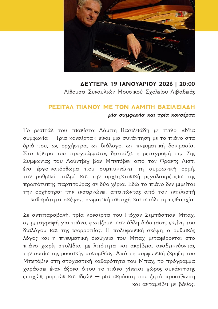 Σεμινάριο πιάνου με τον Λάμπη Βασιλειάδη
