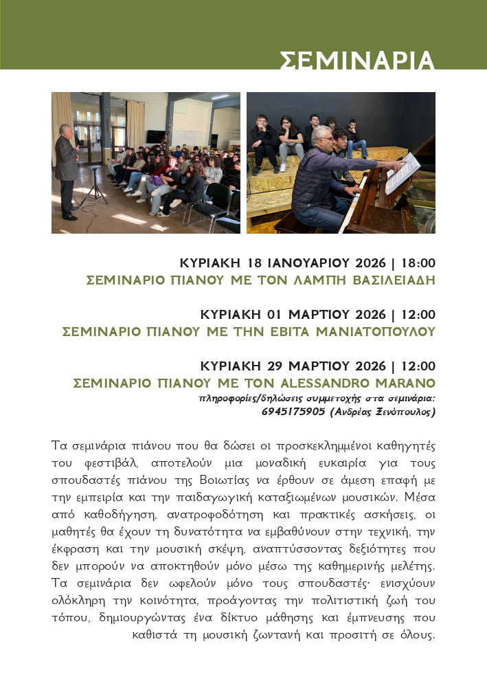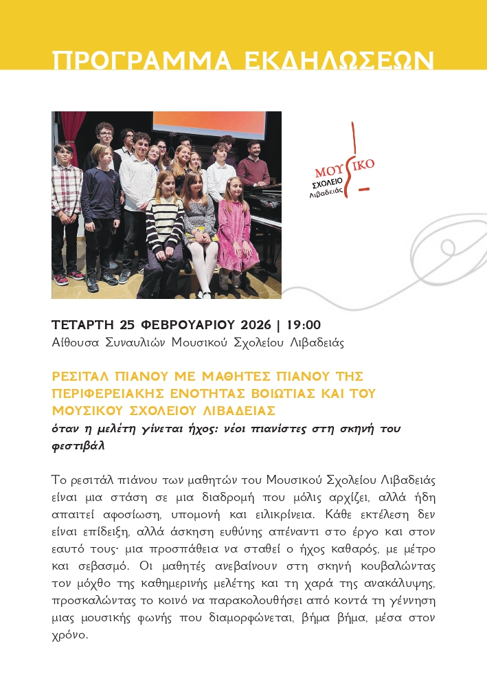 • Μαθητές πιάνου ωδείων και μουσικών σχολών Βοιωτίας και του Μουσικού Σχολείου