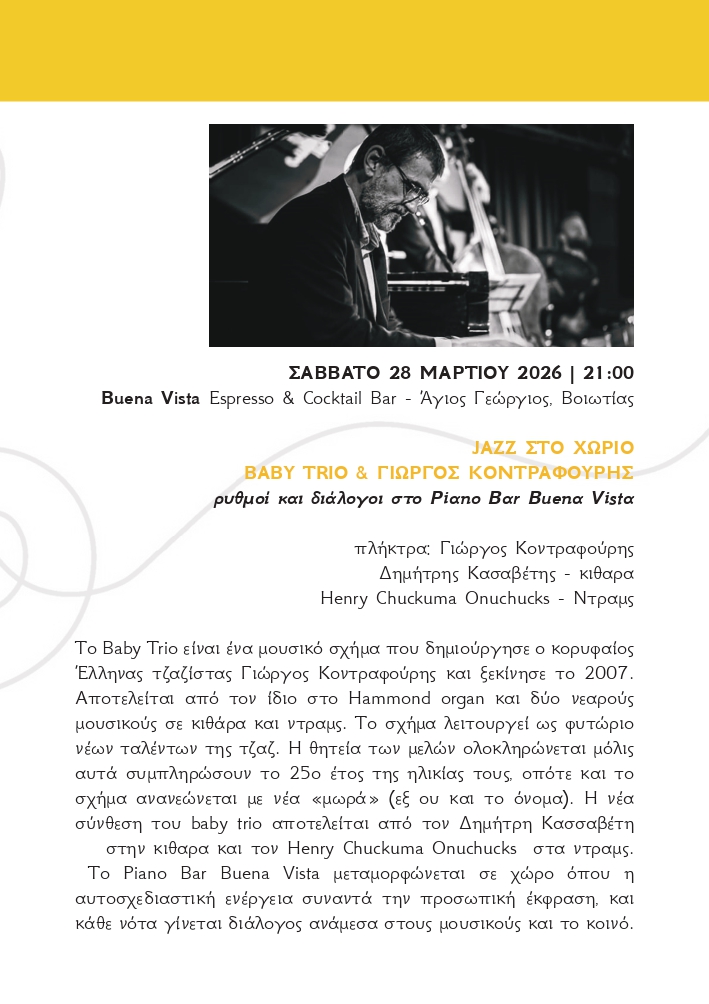 • Baby Trio και Γιώργος Κοντραφούρης (Τμήμα Μουσικών Σπουδών Ιονίου