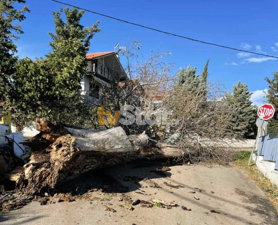 Αλίαρτος: Πτώσεις δέντρων, φωτιά σε κολώνες της ΔΕΗ και απαγόρευση κυκλοφορίας από τις ριπές ανέμων (video)