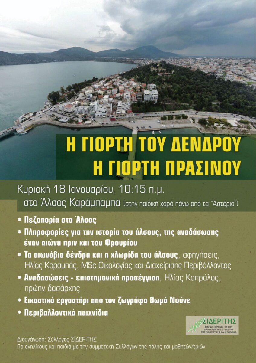 Την Κυριακή 18 Ιανουαρίου, ο Σύλλογος ΣΙΔΕΡΙΤΗΣ αναβιώνει μετά από πολλές δεκαετίες, σε ανάμνηση της πρώτης Εορτής Πρασίνου (στις 9 Δεκεμβρίου 1923) τη Γιορτή του Δένδρου ή τη Γιορτή Πρασίνου!!
