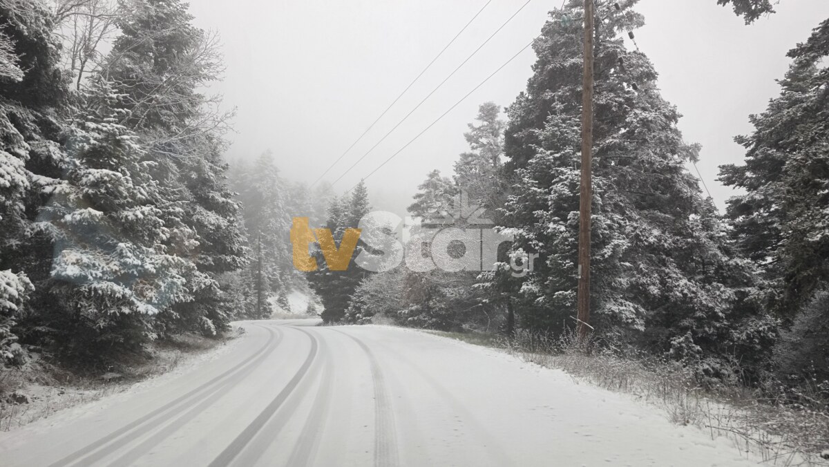 Στα λευκά οι ορεινές περιοχές των δήμων Λαμιέων και Μακρακώμης. Σε επιφυλακή οι αρχές. (φωτο video)
