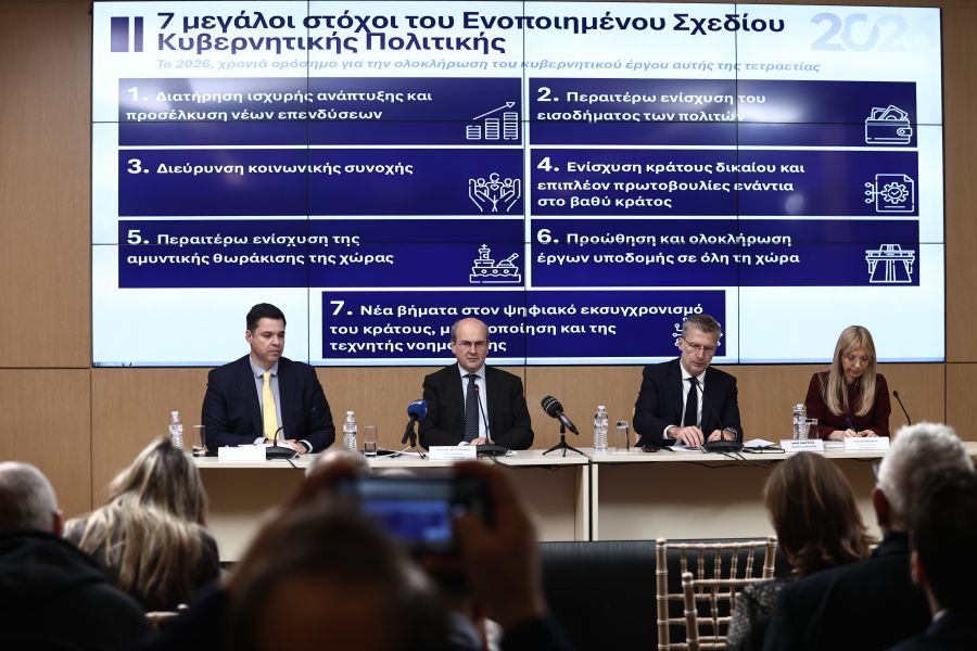 Στην πλήρη χαρτογράφηση των μεγάλων πρωτοβουλιών, μεταρρυθμίσεων, αλλά και έργων για το τρέχον έτος προχώρησε η κυβέρνηση -και εν είδει δέσμευσης προς τους πολίτες όπως πολλάκις αναφέρθηκε- μέσω της συνέντευξης Τύπου που έδωσαν ο αντιπρόεδρος της κυβέρνησης, Κωστής Χατζηδάκης, ο υπουργός Επικρατείας, Άκης Σκέρτσος, ο υφυπουργός παρά τω πρωθυπουργώ, Θανάσης Κοντογεώργης και η γενική γραμματέας Συντονισμού, Εύη Δραμαλιώτη. Τίτλος της συνέντευξης ήταν: «Απολογισμός κυβερνητικού έργου για το 2025 – Ενοποιημένο σχέδιο κυβερνητικής πολιτικής 2026».