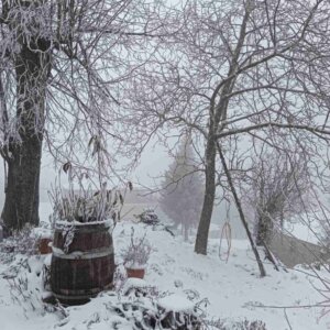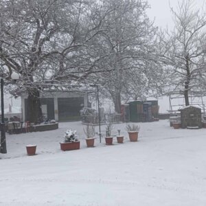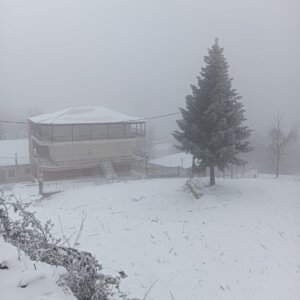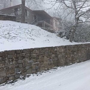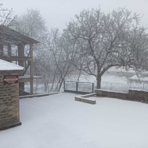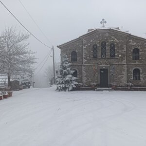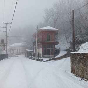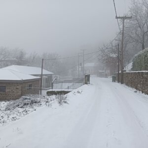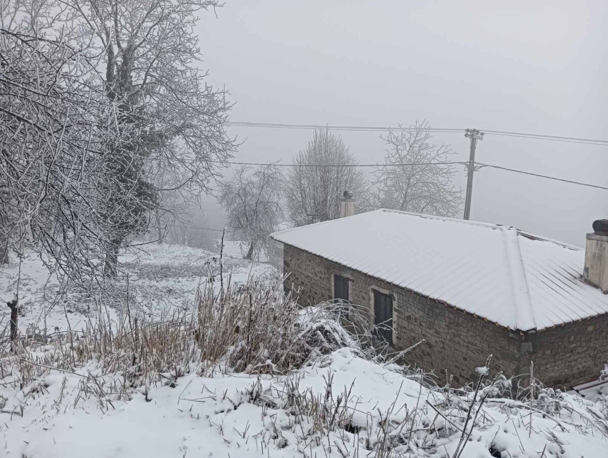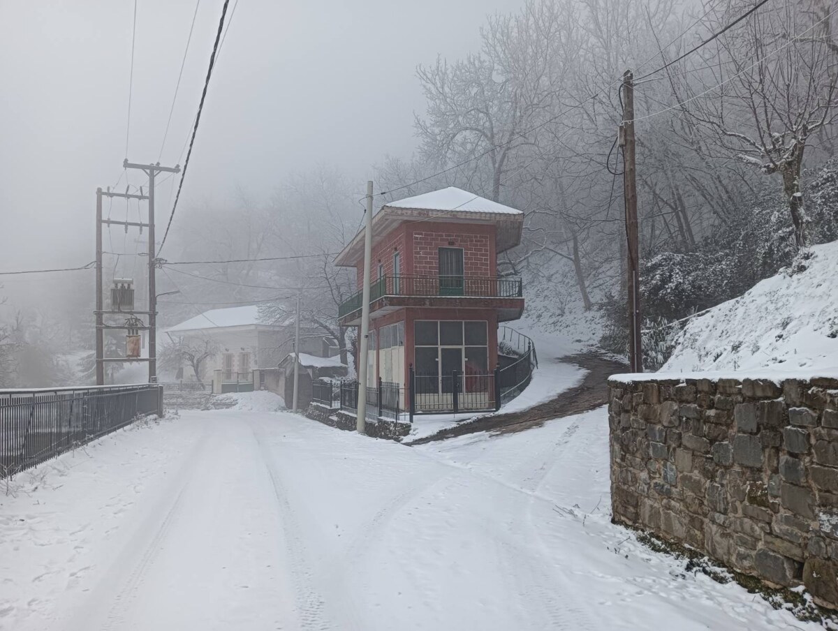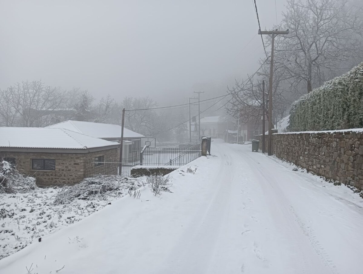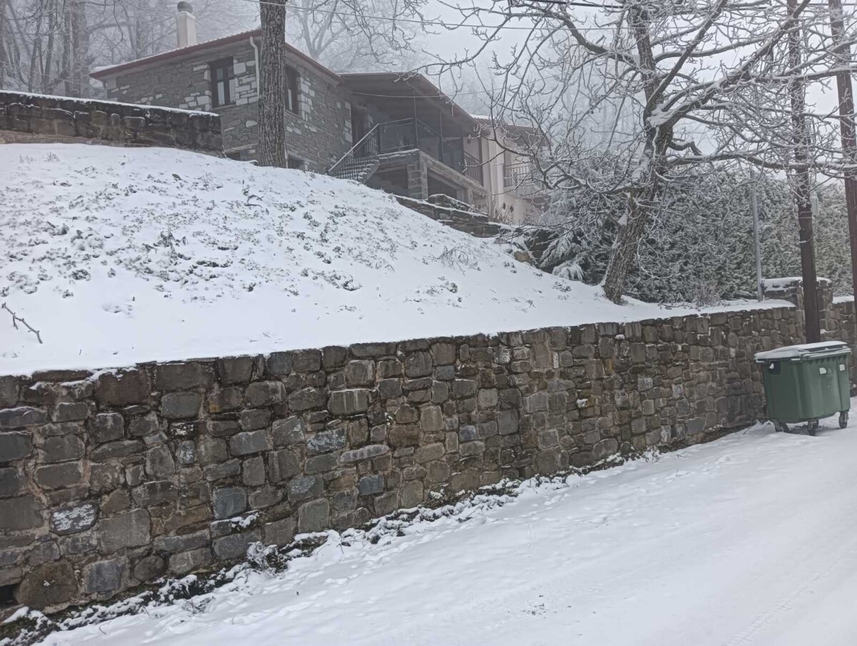 Με το πρώτο φως της ημέρας, το χωριό ξύπνησε ντυμένο στα λευκά, θυμίζοντας καρτ ποστάλ. Οι λιγοστοί κάτοικοι και επισκέπτες απαθανάτισαν τις στιγμές, με το χιονισμένο τοπίο να αναδεικνύει για ακόμη μία φορά τη γοητεία και τη γαλήνη της περιοχής.