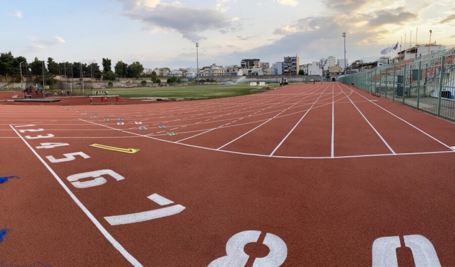 Η διαγράμμιση όλου του στίβου του σταδίου, ώστε να είναι διακριτά και ομοιόμορφα τα “κουλουάρ”.