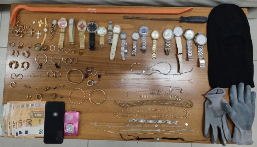Κατά τη διάρκεια των ερευνών που πραγματοποιήθηκαν, στην κατοχή του, καθώς και στην οικία του σε περιοχή της Ζακύνθου, βρέθηκαν και κατασχέθηκαν συνολικά, πλήθος κοσμημάτων (αλυσίδες, βραχιόλια, σταυροί, ρολόγια κ.α.), φωτογραφική μηχανή, κινητό τηλέφωνο, καθώς και το χρηματικό ποσό των -510- ευρώ.