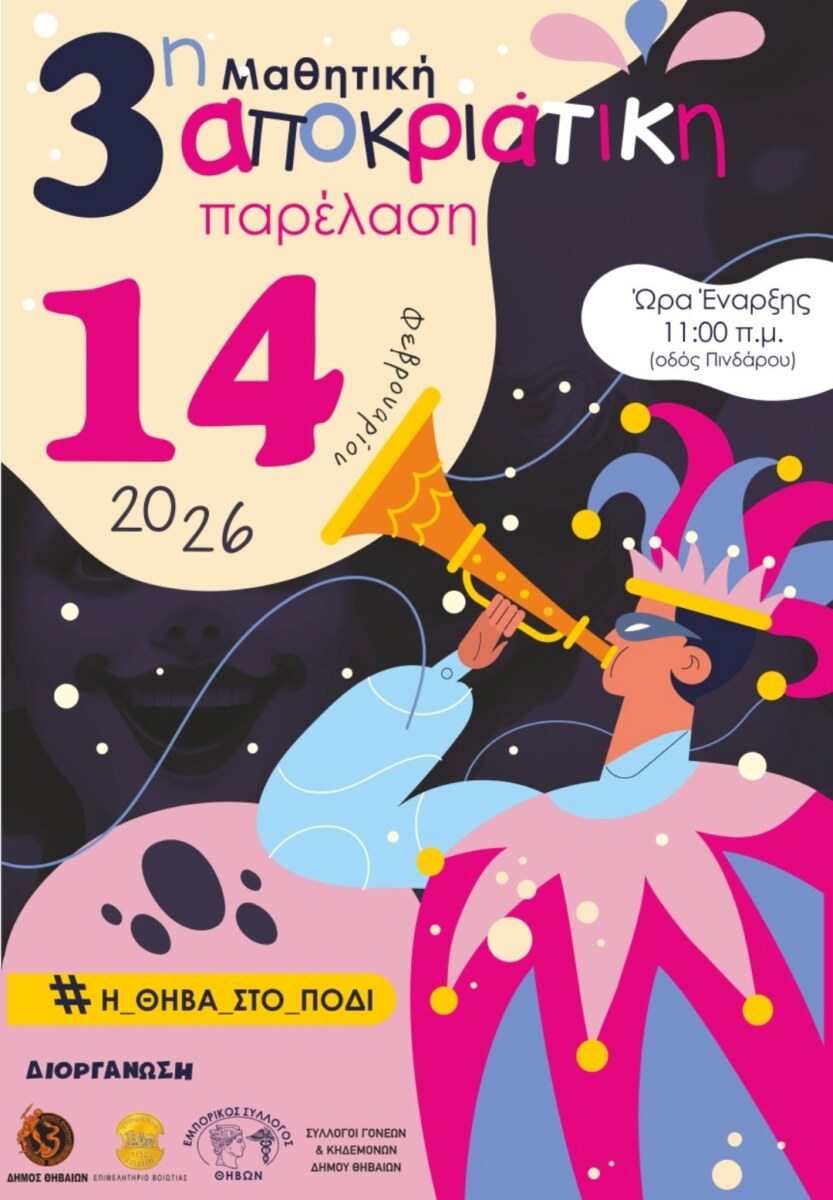 Για 3η χρονιά φέτος μαθητές και μαθήτριες της Θήβας θα πραγματοποιήσουν αποκριάτικη παρέλαση στο κέντρο της πόλης.