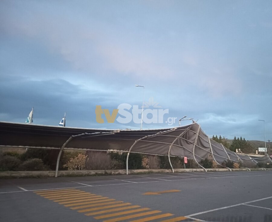 Εύβοια: Μπουρίνι ξήλωσε στέγαστρα αυτοκινήτων σε σούπερ μάρκετ