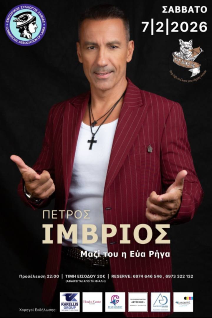Ο Εμπορικός Σύλλογος Λαμίας σας προσκαλεί στον ετήσιο χορό του με τον Πέτρο Ίμβριο – Σάββατο 7 Φεβρουαρίου
