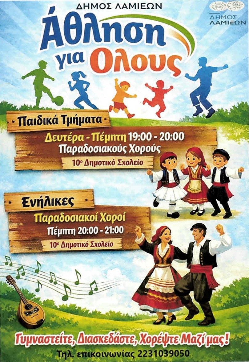 Πολίτες ανεξαρτήτως ηλικίας έχουν τη δυνατότητα να αθληθούν χάρη στα προγράμματα “Άθληση για όλους” από το Δήμο Λαμιέων. Με περισσότερους από 500 συμμετέχοντες και πληθώρα δραστηριοτήτων, μικροί και μεγάλοι έχουν την ευκαιρία να επιλέξουν ανάμεσα σε προγράμματα υδρογυμναστικής, θεραπευτικής κολύμβησης, μηχανικής ενδυνάμωσης, πιλάτες και αερόμπικ, στα διάφορα σημεία της πόλης, όπως στο κλειστό γυμναστήριο Χαλκιοπούλειο, στο δημοτικό κολυμβητήριο και σε σχολεία.